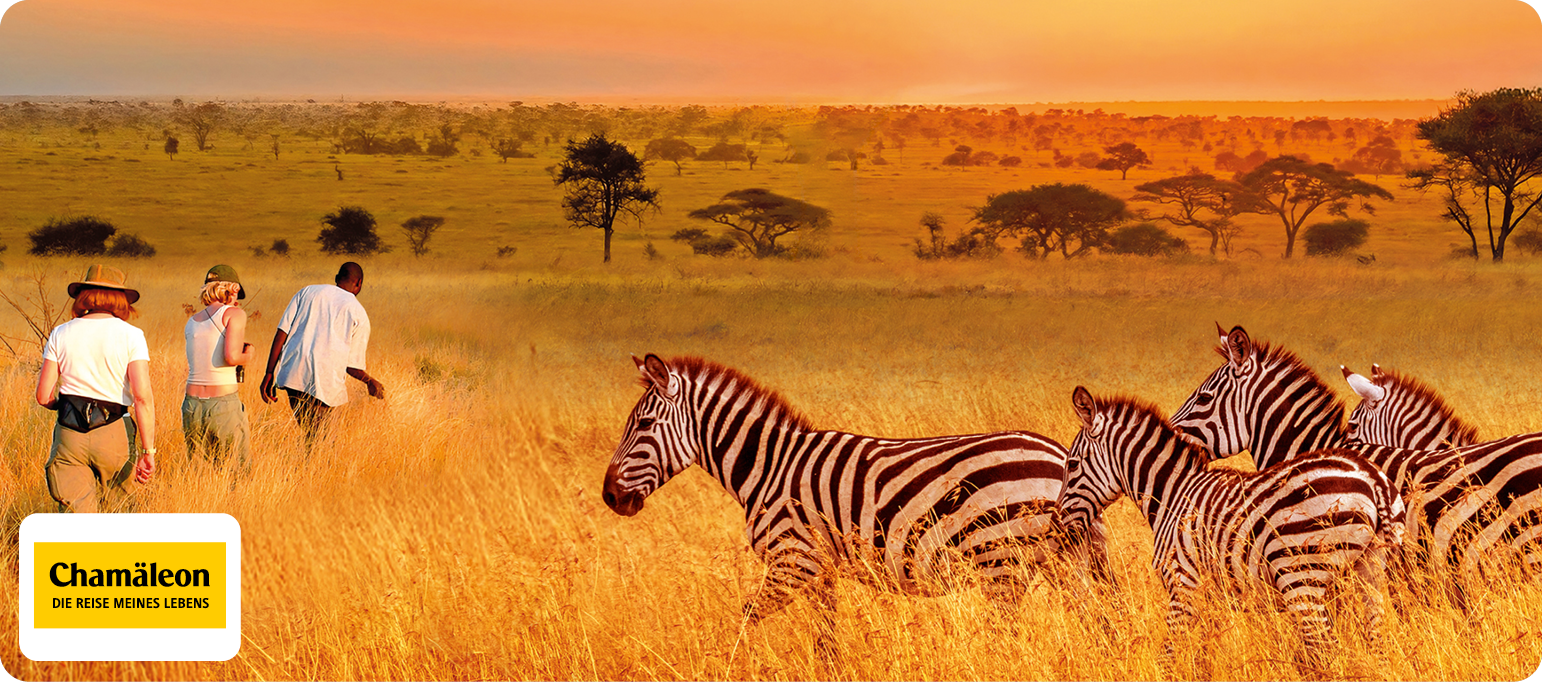 Ankommen in der Hatari Lodge und plötzlich ist sie da die Weite. 6 Tage Safari im Geländewagen, zu Fuß durch den Arusha-Nationalpark, mittendrin das Wunder Ngorongoro-Krater. Und danach? Barfuß-Glück im AQUA Beach Resort & Spa auf Sansibar.